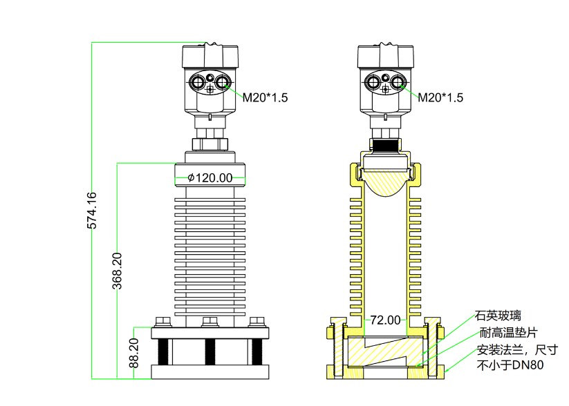 - GJM-KG型(卡箍安裝形式)音叉式濃度計